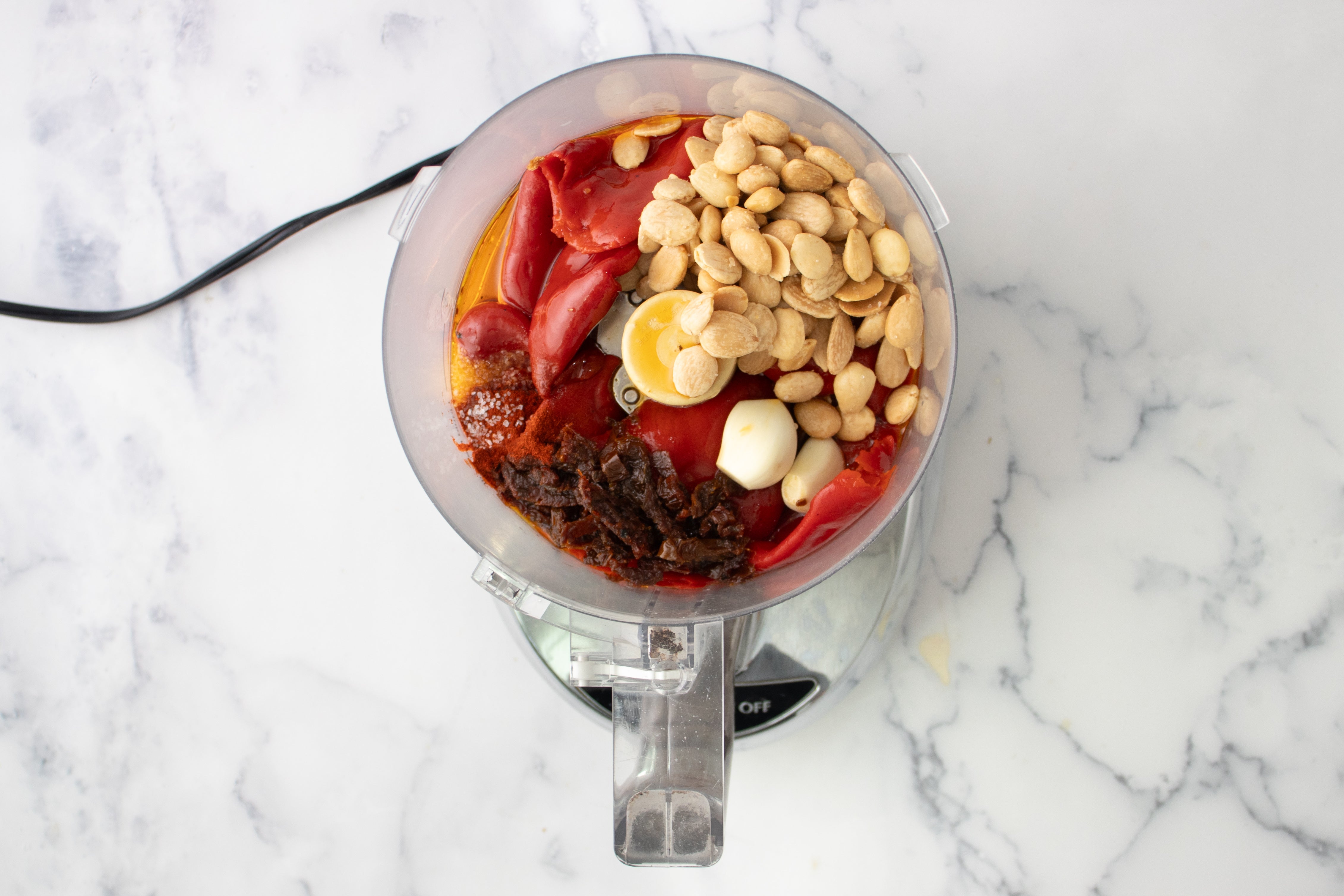 Romesco Sauce is a versatile condiment. It can be used as an ingredient in cooked foods, seasoning proteins, veggies, and starches. Romesco can also be used as a spread or dip, enhancing sandwiches, crudites or charcuterie platters. Our version of romesco highlights a number of products from the Matiz catalog, each imparting unsurpassed gourmet elements; Matiz Piquillo Peppers, Arvum Moscatel Sherry Vinegar, Castillo de Canena Harissa Arbequina Olive Oil, and Matiz Marcona Almonds with Sea Salt.