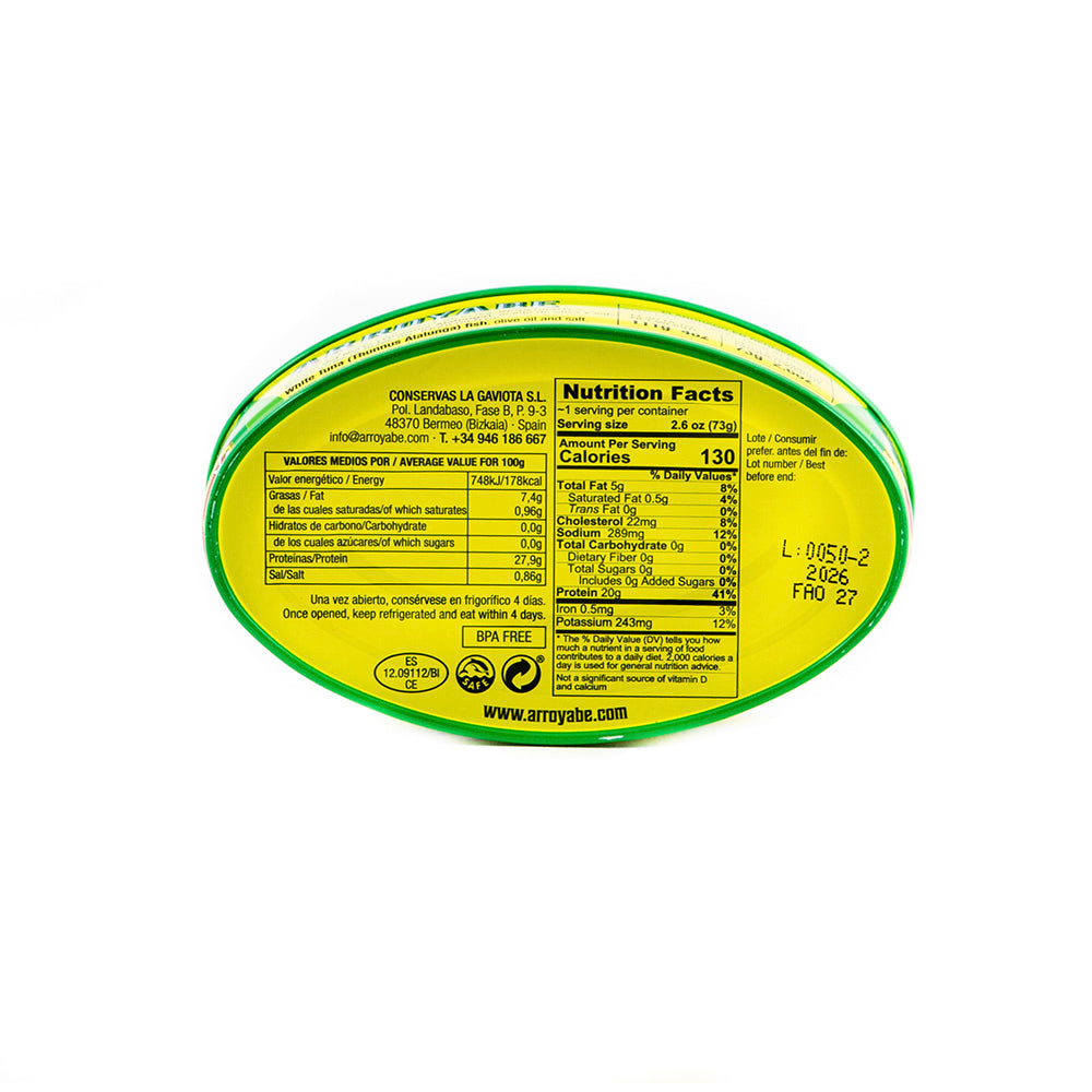White Tuna (Thunnus alalunga) fish, olive oil, salt.