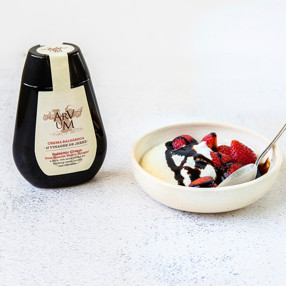 Crafted from a blend of sherry vinegar and reduced sherry grape must from palomino and muscat grapes, this balsamic cream offers a silky texture with rich notes of licorice, dried fruits, and caramel. The perfect finish to cheese or dessert and adds depth to any salad or sauce!