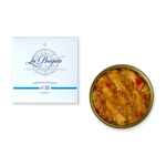 Experience the savory delight of sardines in a rich, flavorful sauce. Sustainably caught through traditional methods, these sardines are cleaned one-by-one, brined, steam, and marinated in a red pepper and onion sauté.