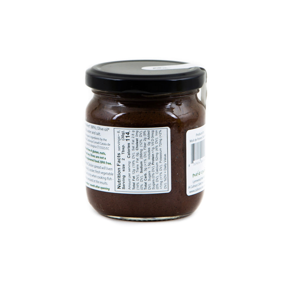 Unique organic Spanish tapenade with fruity empeltre olives and salt. Made in Barcelona using traditional recipes and organic Mediterranean ingredients, this flavorful spread can be enjoyed on sandwiches, pasta, orc cheeses!