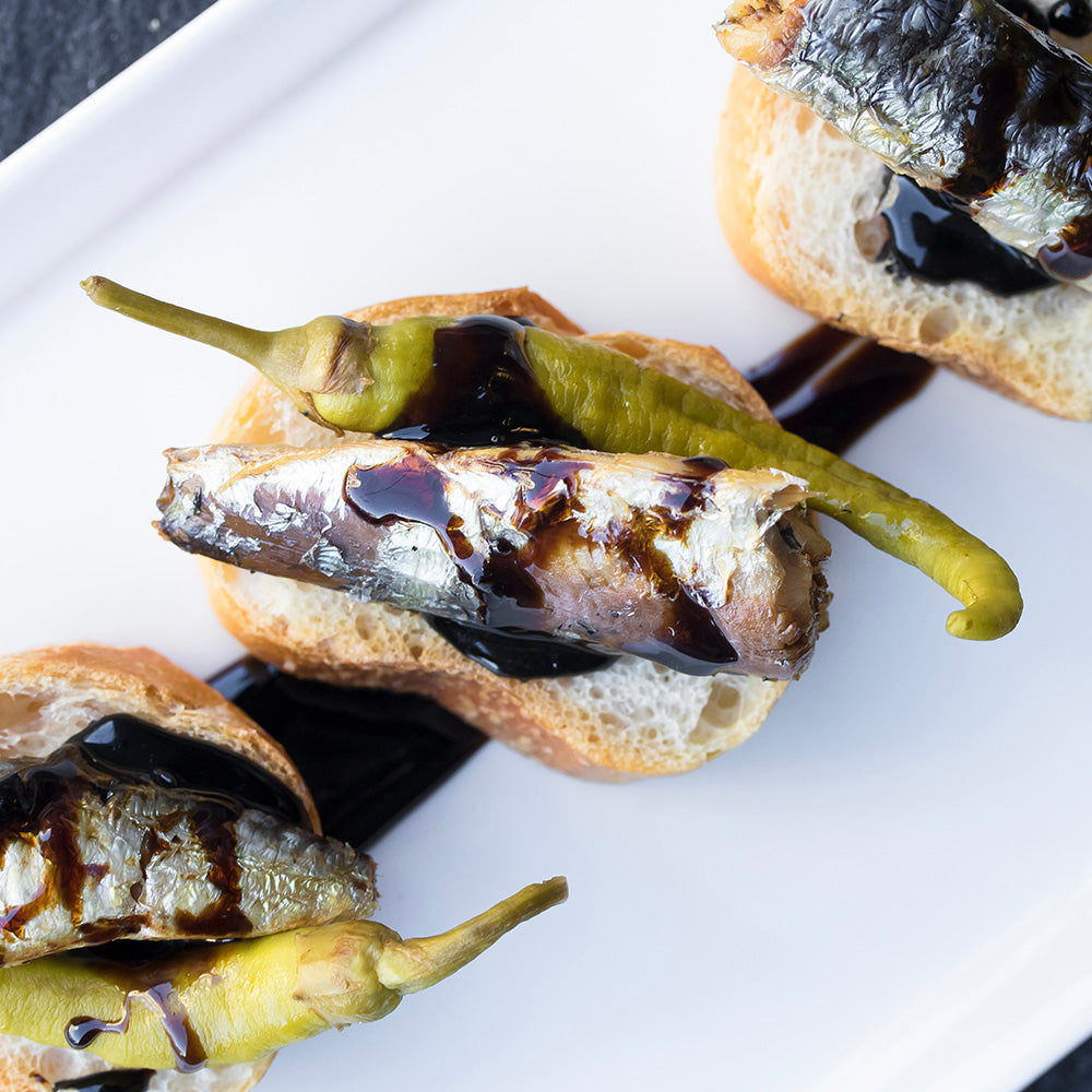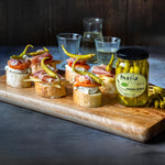 Perfectly crisp and mildly spicy, these pickled piparra peppers (also known as guindillas) add a tangy vinegar kick to any dish! Hand-picked in the Basque region of Spain, they’re carefully preserved in vinegar and salt for a fresh, zesty flavor. Add them to burgers, sandwiches, or use as a garnish for savory cocktails!